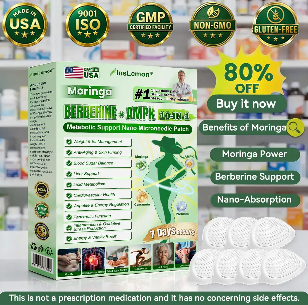 đđ§đŹđđđŠđšđ§Âź đ đŒđżđ¶đ»đŽđź Ă đđČđżđŻđČđżđ¶đ»đČ Ă đđ đŁđ đđŹ-đ¶đ»-đ đ đČđđźđŻđŒđčđ¶đ° đŠđđœđœđŒđżđ đĄđźđ»đŒ đ đ¶đ°đżđŒđ»đČđČđ±đčđČ đŁđźđđ°đ” was developed through more than 20 years of research by a multidisciplinary team of over 30 experts. Each patch incorporates an ultra-fine microneedle architecture measuring approximately one-seventh the thickness of a human hair, designed to ensure a smooth and virtually painless application. The formulation contains highly concentrated natural bioactive compounds, up to 20-fold higher than conventional market levels, including Moringa and Berberine, which act synergistically to support healthy glycemic responses, appetite regulation, and lipid metabolism, thereby promoting gradual and sustainable weight management. Enriched with NAD+, the patch further supports skin firmness and structural resilience during body-weight fluctuations, helping maintain a lean appearance without compromising comfort or aesthetics. Additional high-efficacy components contribute to the support of immune function, digestive health, gut balance, womenâs health, daily energy levels, and fatigue reduction, collectively promoting a more youthful and resilient physiological state from within. Manufactured in GMP-certified facilities that comply with both U.S. and EU quality standards, this needle-free, science-driven solution provides a safe and comprehensive approach to effective weight management and long-term metabolic health, designed to work in harmony with the body rather than against it.